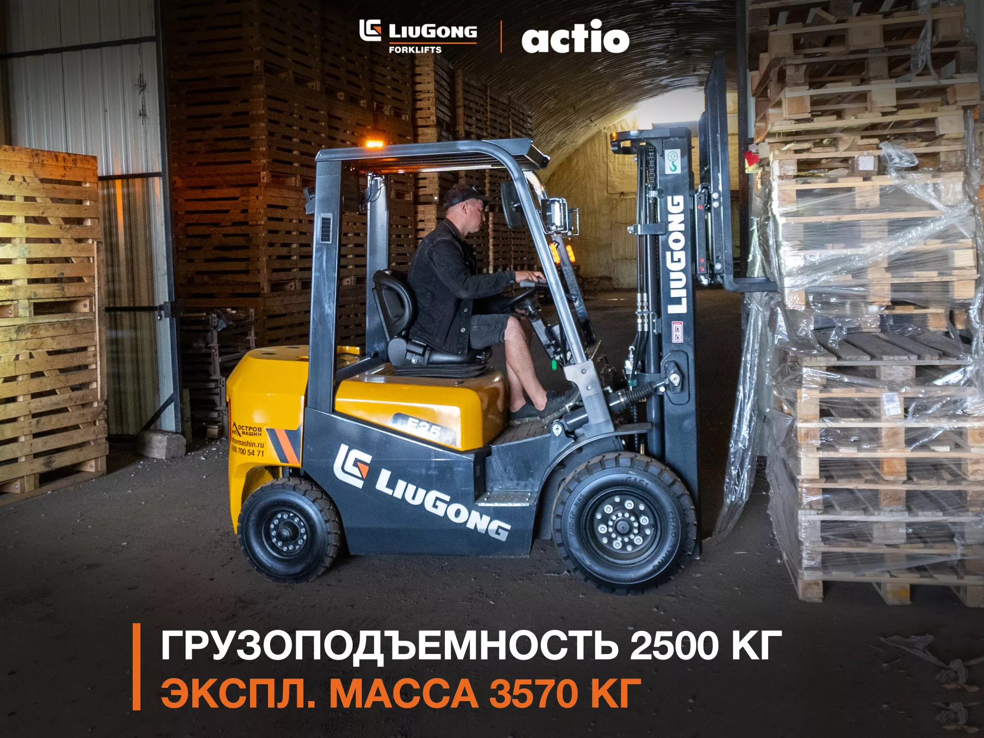 - Оптимальная грузоподъёмность 2500 кг — универсальность применения в обрабатывающей и хранительной логистике;