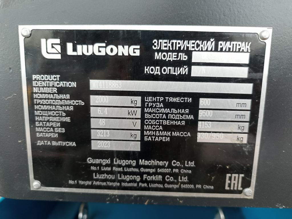 Четырехопорные электрические вилочные погрузчики LiuGong