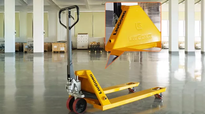 LiuGong CLG2025MJ - ручная гидравлическая тележка (рохля) грузоподъемностью 2500 кг. Простая, надежная и удобная техника для разнообразных задач ручной транспортировки на короткие расстояния в магазинах и складах, а также на заводах.