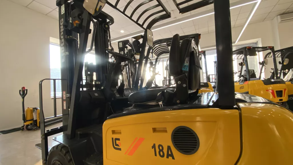 Компактный электрический вилочный погрузчик LiuGong CLG2018A-S грузоподъемностью 1800 кг с высотой подъема мачты до 3000 мм.
